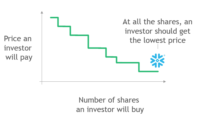 The more money an investor gives the company, the lower price they should expect. Say Snowflake is selling 20% of the company. So if a single investor gives them $6B (20% of a $30B valuation) it should expect the lowest possible price in the range. This would end up putting the price all the way to the right hand side of the chart.